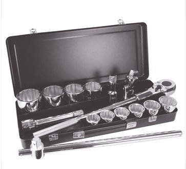 • 10件19MM系列6角公制套筒: 30, 32, 34, 36, 38, 41, 46, 50, 55, 60MM • 1件19MM系列钢柄棘轮扳手 • 2件19MM系列转向扳杆: 4",8" • 1件19MM系列T形滑杆 • 1件19MM系列万向接头